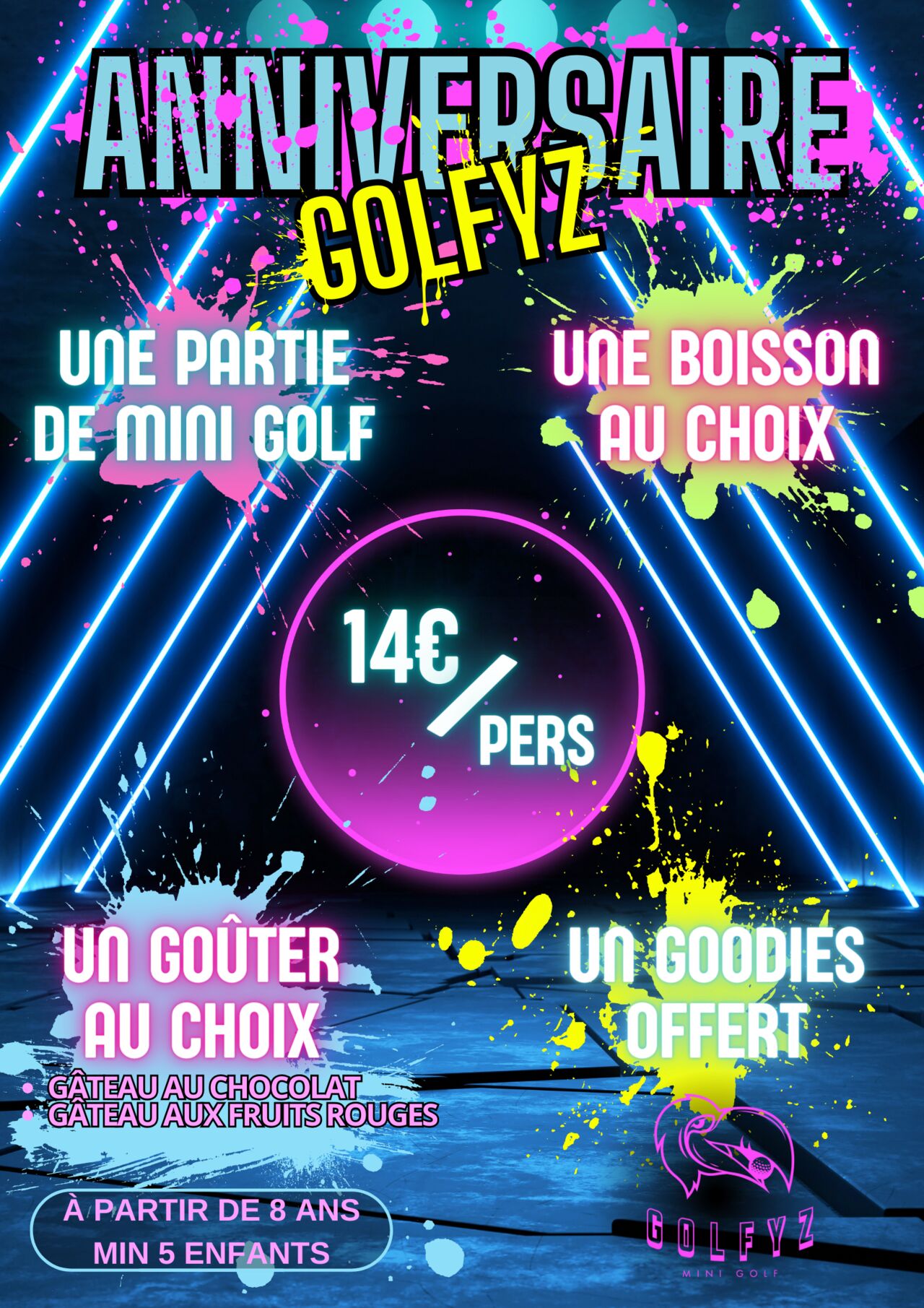 Avec notre formule anniversaire, vos enfants pourront profiter d’une partie de mini-golf, d’un goûter et d’un goodies offert, pour seulement 14€ par enfant